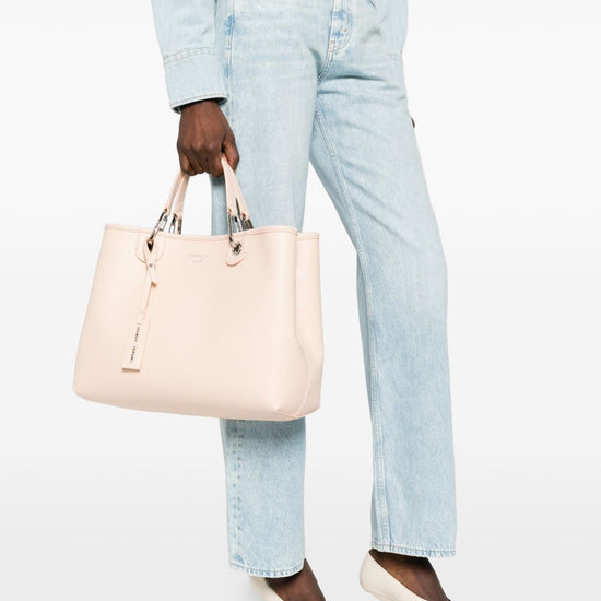 Light pink top handled silver-tone hardware detachable strap this piece comes complete with a protective dust bag. myea medium shopping bag