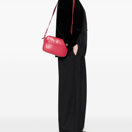 Red leather logo lettering zip fastening detachable strap rectangular shape crossbody mini bag