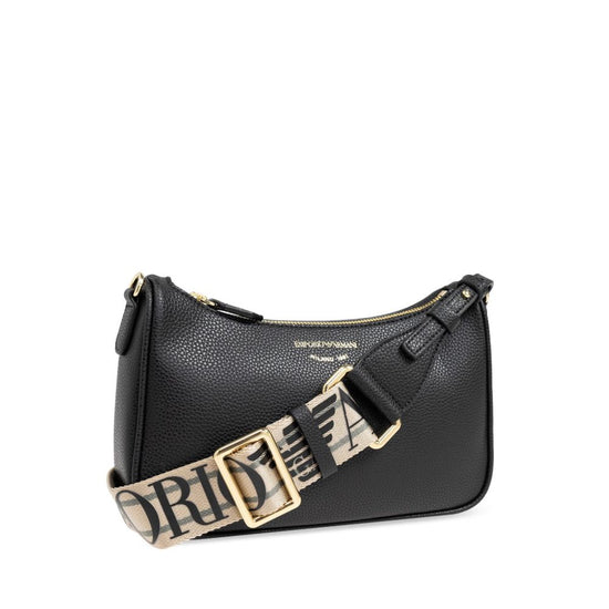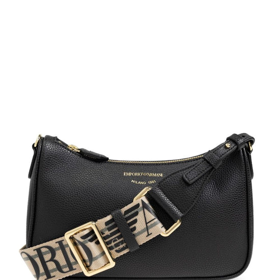 Black faux leather pebbled texture top zip fastening adjustable detachable shoulder strap logo-print strap logo stamp to the front main compartment internal slip pocket baguette shoulder bag size and fit - width 23 cm height 14 cm depth 6.5 cm shoulder strap 115 cm