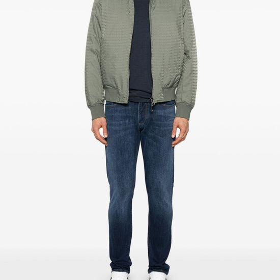 Ivy green front zip fastening two side welt pockets long sleeves jacquard nylon bomber jacket size and fit - this piece fits true to size. we recommend you get your regular size. model is 1,84m / 6ft 1in wearing size 48 (it)