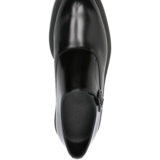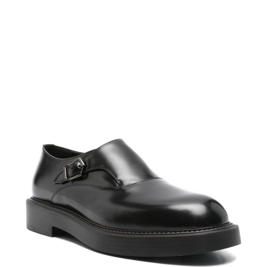 Black calf leather buckle fastening leather brogues