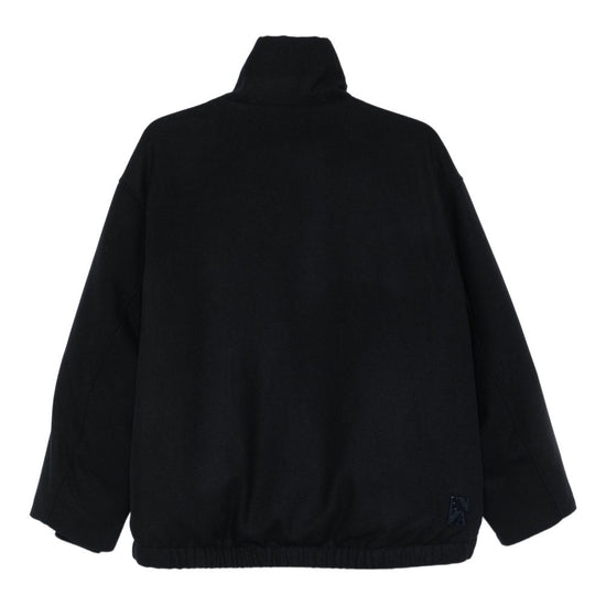 Black high neck button fastening front pockets rear elasticated hem long sleeves