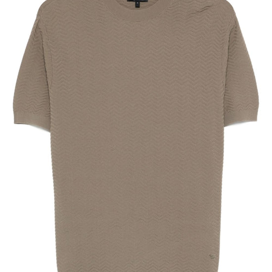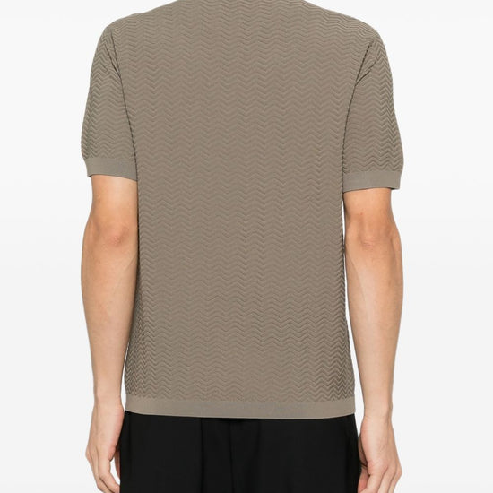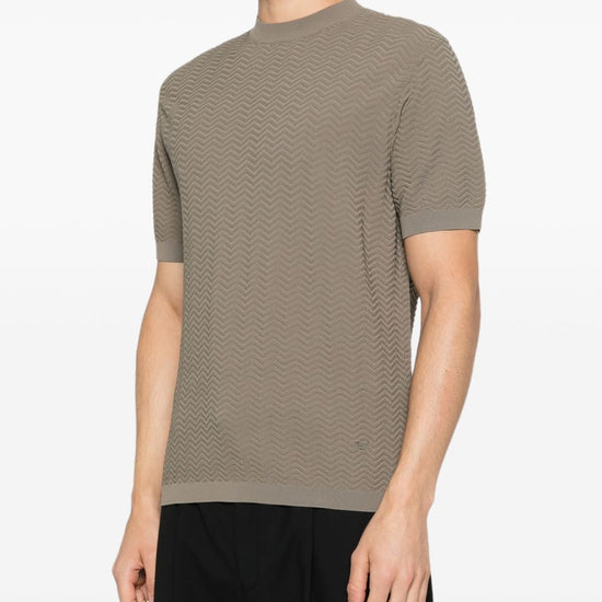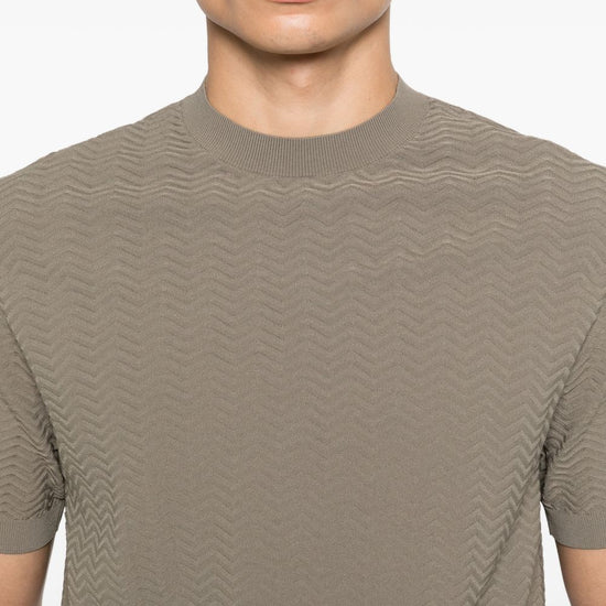 Green textured knit short sleeves crew neck ribbed trims knitted t-shirt