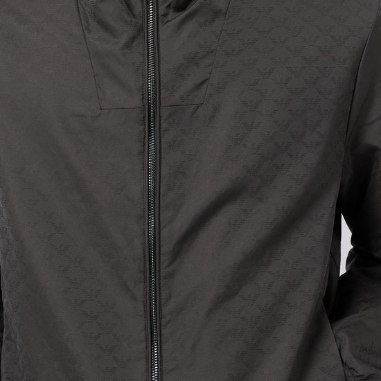 Emporio Armani Hooded jacket with zip in nylon jacquard eagle all over