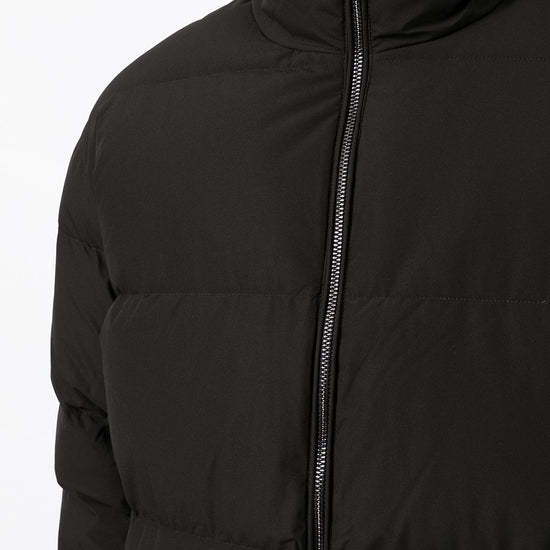 Black padded design front zip fastening long sleeves high neck nylon down jacket