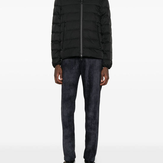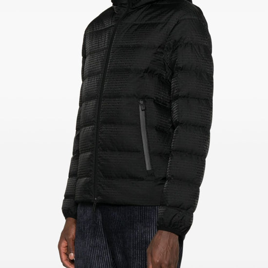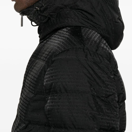 Black front two-way zip fastening long sleeves drawstring hood nylon down vest