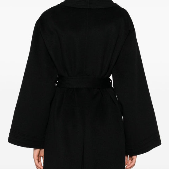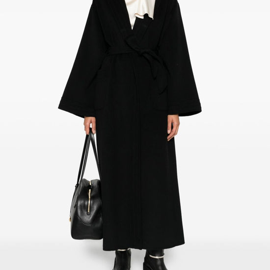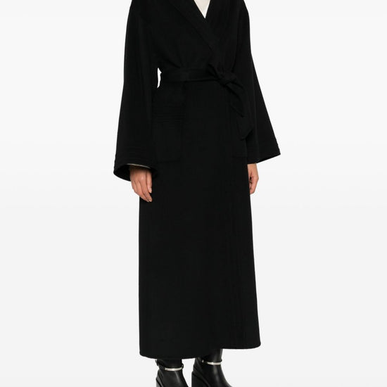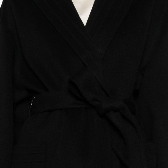 Black belt front pockets long sleeves shawl lapels