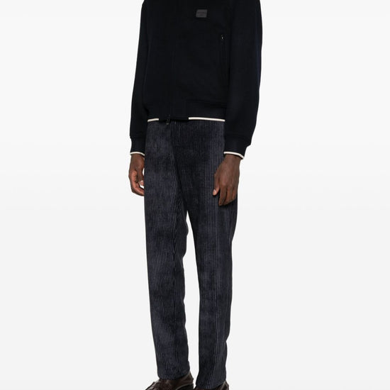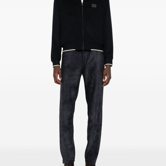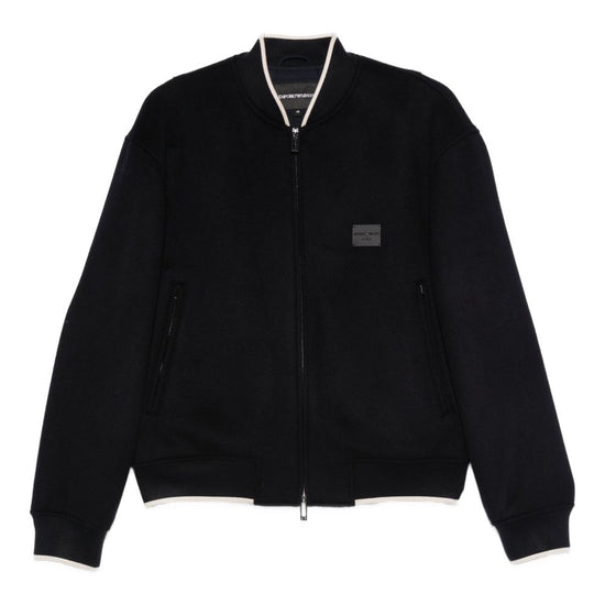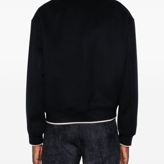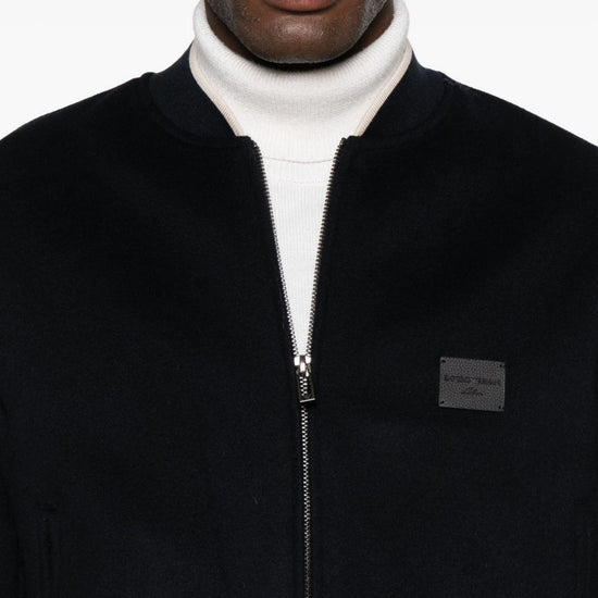 Midnight blue front two-way zip fastening long sleeves ribbed cuffs and hem wool bomber jacket