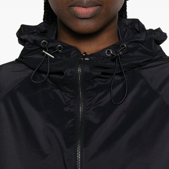 Short blue jacket, with zip and nylon hood. nylon blouson jacket