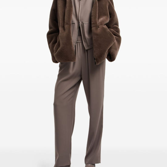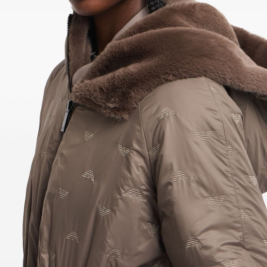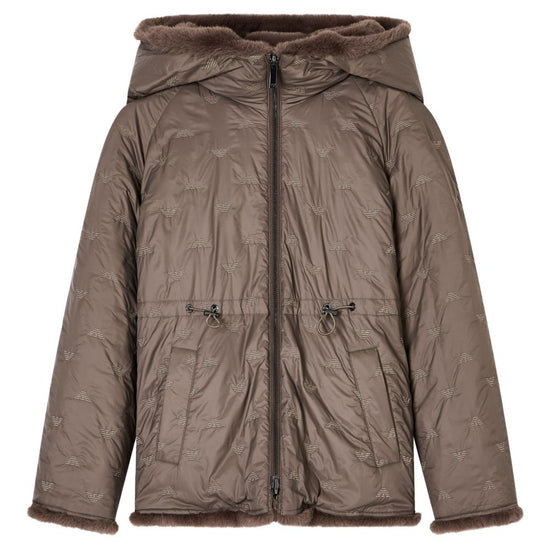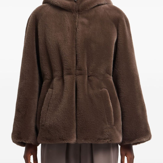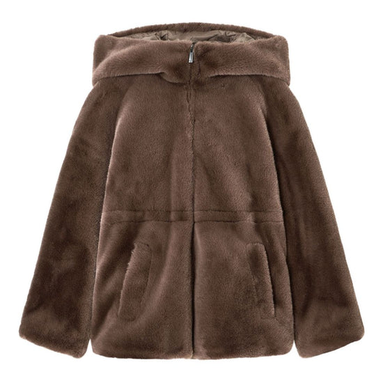 Brown faux fur zip fastening hooded neckline quilted panel  teddy blouson jacket