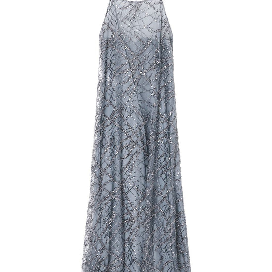 Emporio Armani Long tulle dress with all-over micro sequin and jet embroidery