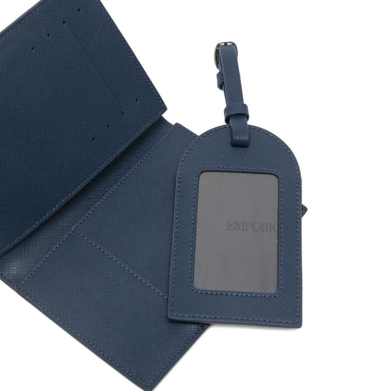 Blue logo plaque card slots includes a luggage tag passport holder