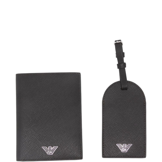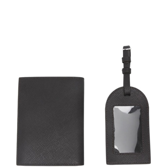 Black silver-tone logo card slots includes a luggage tag passport holder