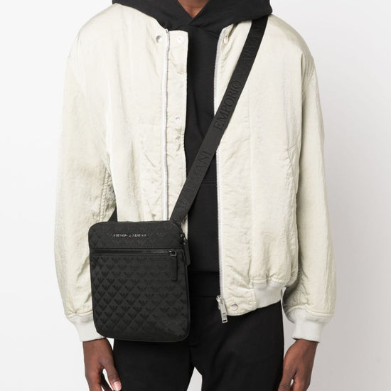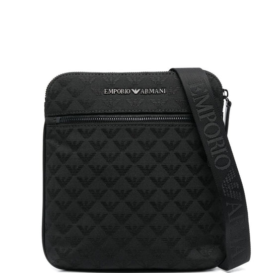 Black jacquard logo motif fine ribbed silver-tone logo lettering silver-tone logo plaque logo shoulder strap tonal stitching tonal hardware top zip fastening adjustable shoulder strap front zip-fastening pocket internal logo patch internal zip-fastening pocket main compartment crossbody bag