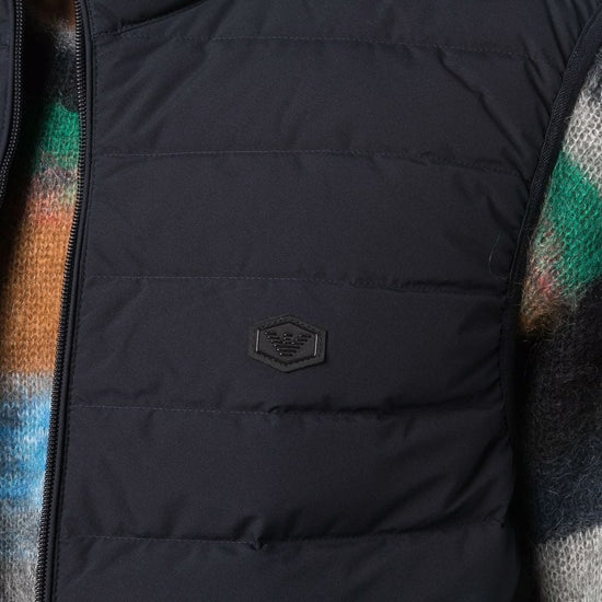 Emporio Armani Full-zip, sleeveless quilted nylon down jacket with eagle logo patch