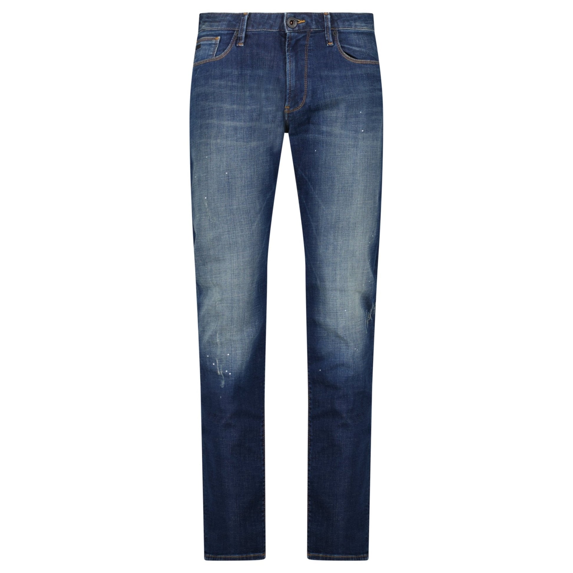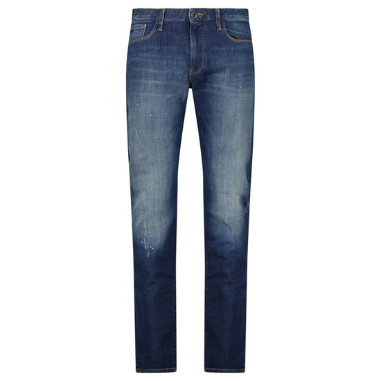Emporio Armani J06 Slim Fit 5 Pocket Paint Splatter Jeans Blue