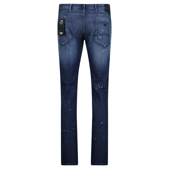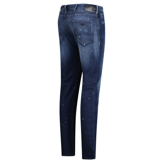 Emporio Armani J06 Slim Fit 5 Pocket Patch Paint Splatter Jeans Blue