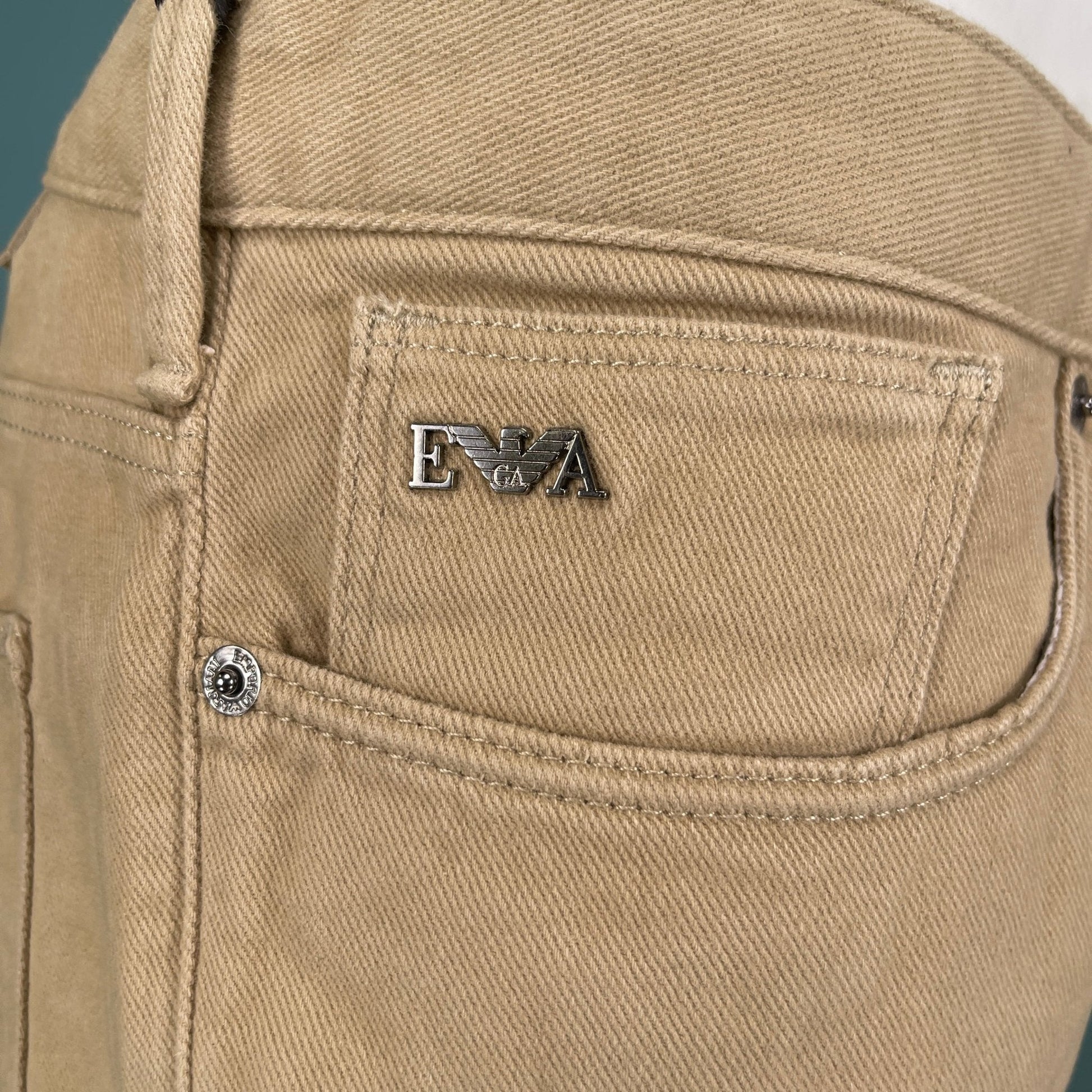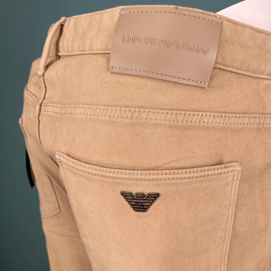 Emporio Armani J06 Slim Fit 5 Pocket Silver Eagle Belt Patch Jeans Beige