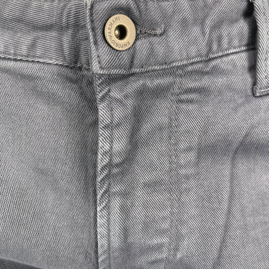 - silver eagle belt patch and back pocket branding for a signature armani touch