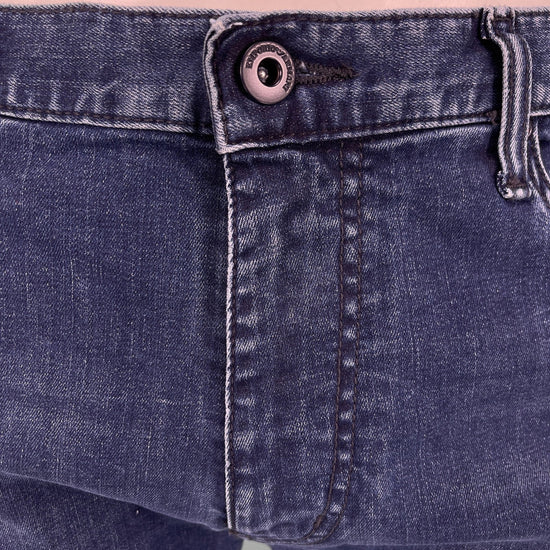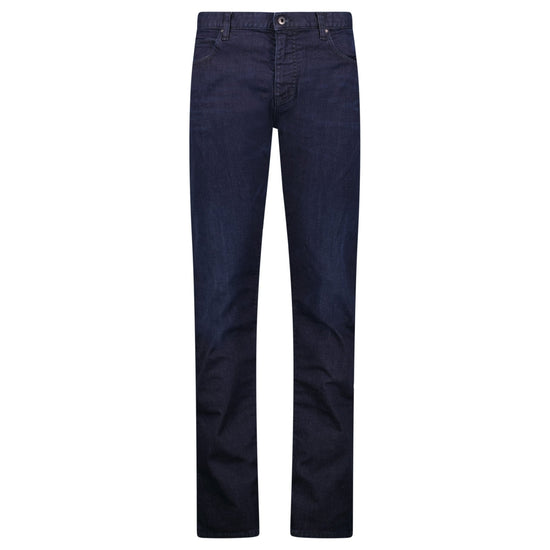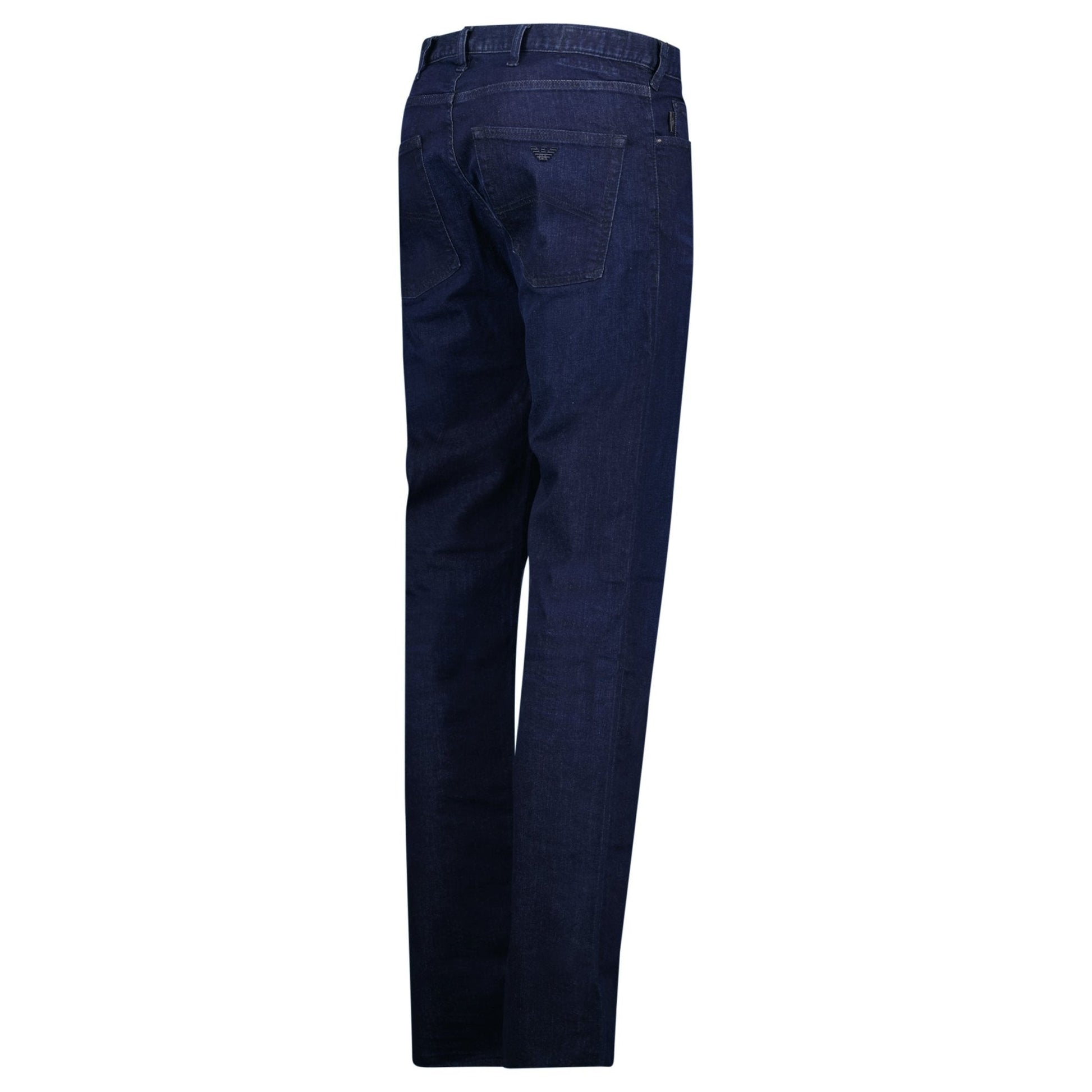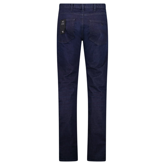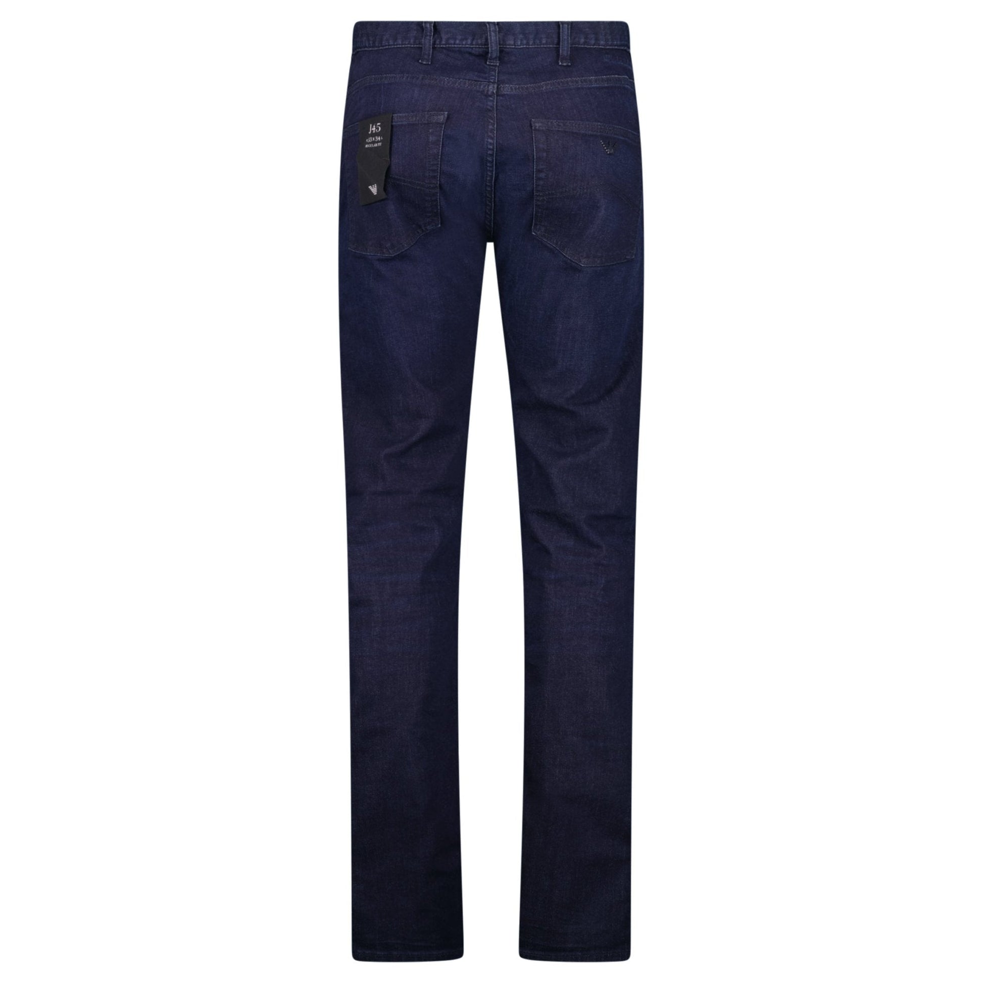 Emporio Armani J45 Regular Fit 5 Pocket Black Eagle Distressed Belt Patch Jeans Dark Blue