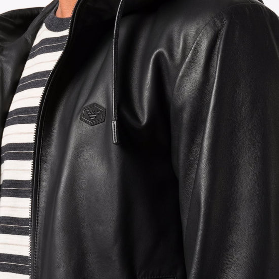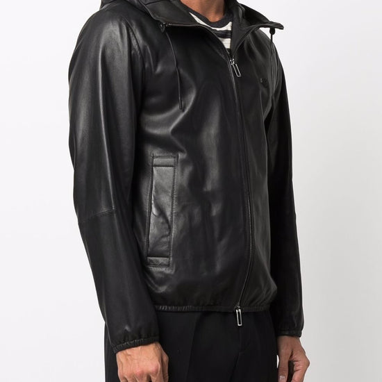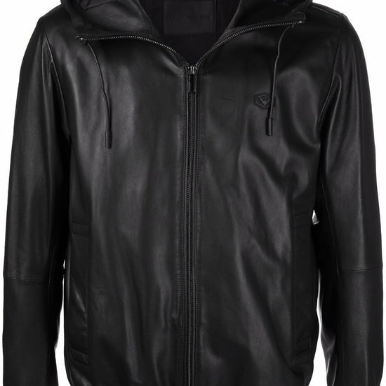 Emporio Armani Lambskin hooded jacket drawstring