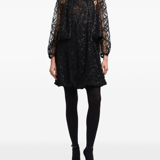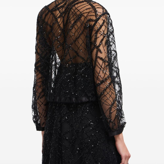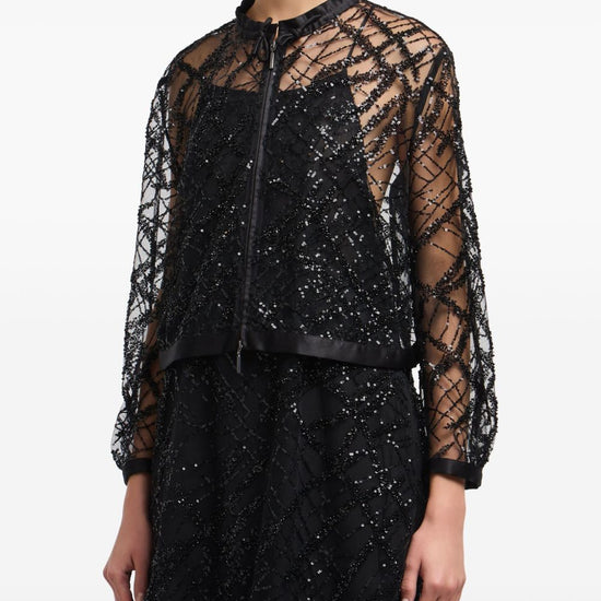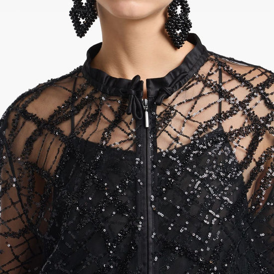 Black sheer fabric sequin embellishment zip fastening sequined jacket