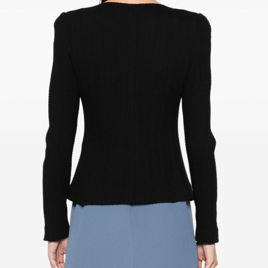 round neck cotton blend blazer jacket