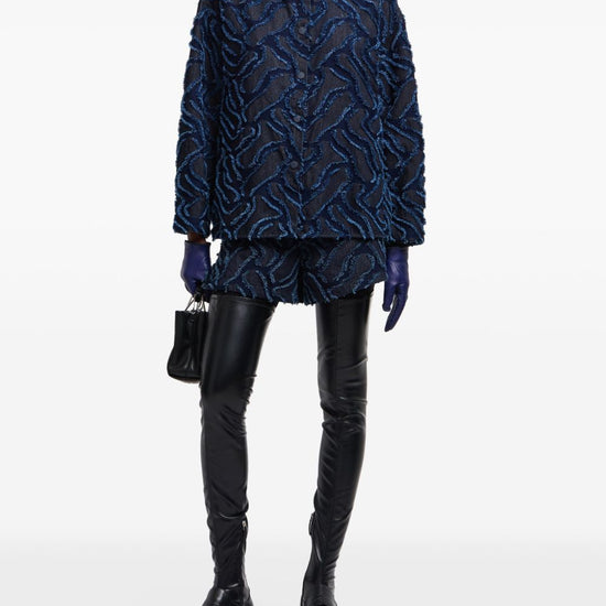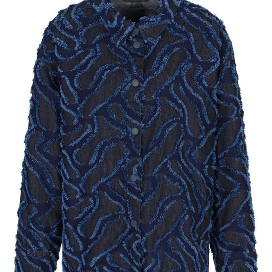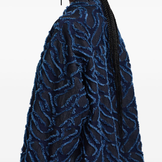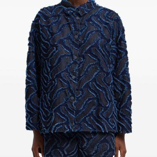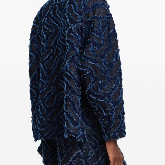 Emporio Armani Fringed embossed-motif jacquard denim shirt jacket