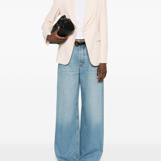 Light natural notched lapels single-button closure front flap pockets long sleeves tailored cut single-breasted blazer jacket