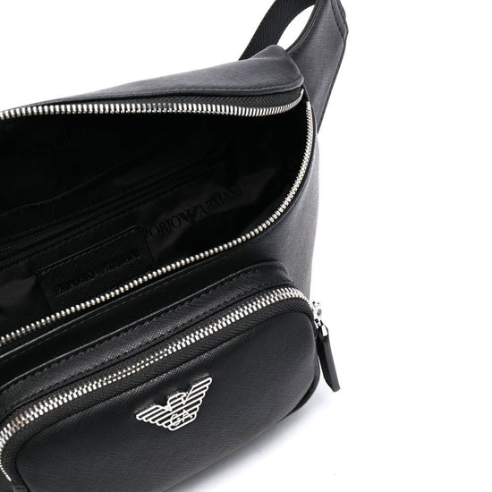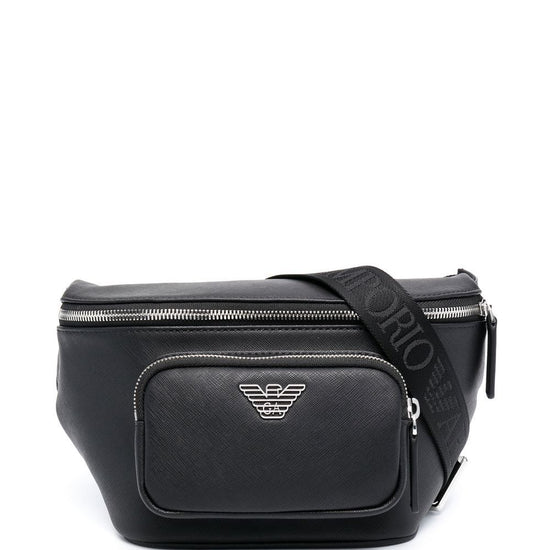 Leather logo-plaque bag from emporio armani featuring black, calf leather, logo plaque, single shoulder strap, front zip-fastening pocket and front zip fastening. logo belt bag size and fit - width 9,84 in / 25 cm height 5,91 in / 15 cm depth 1,97 in / 5 cm strap 23,62 in / 60 cm