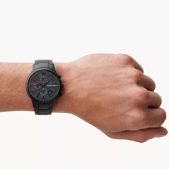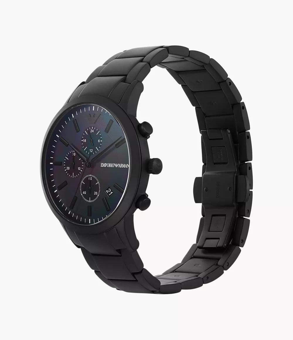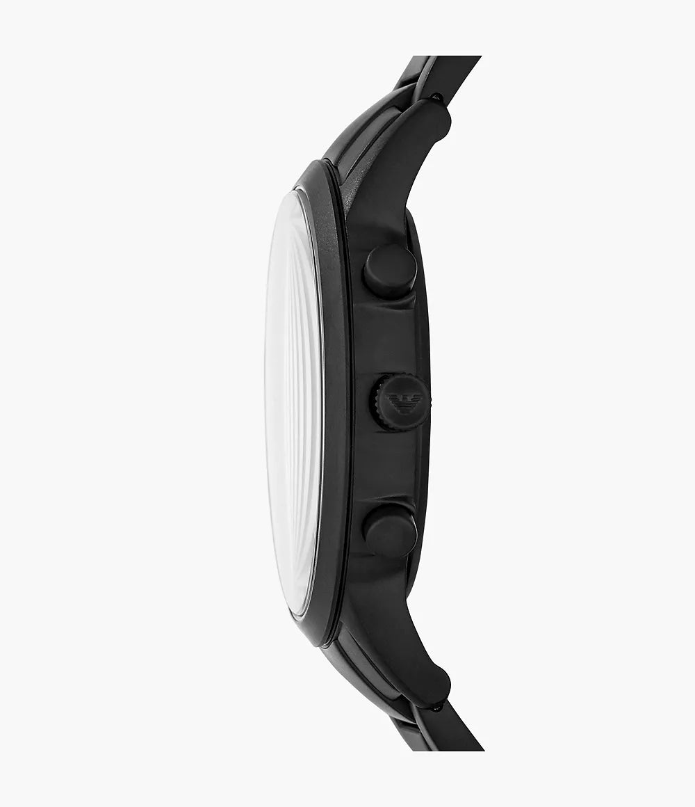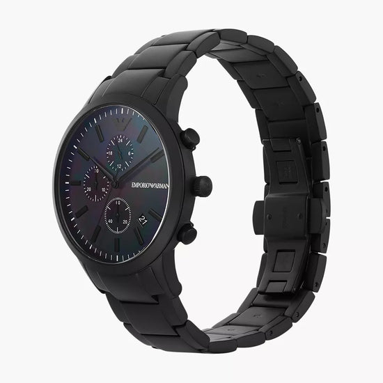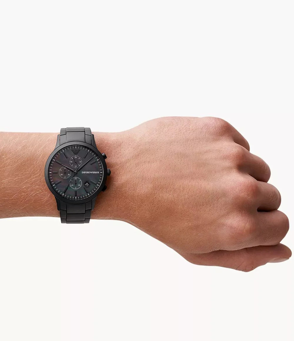 the emporio armani ar11275 silver-tone stainless steel chronograph watch is a refined and stylish timepiece designed for the modern man. featuring a sleek silver-tone stainless steel case and bracelet, this watch combines durability with elegance. the sophisticated black dial is adorned with silver-tone hands and markers, along with three chronograph sub-dials that add both functionality and a sporty touch. the date display at the 4 o'clock position offers additional convenience. whether you're at a formal event or going about your daily activities, the ar11275 is a versatile accessory that complements any outfit.