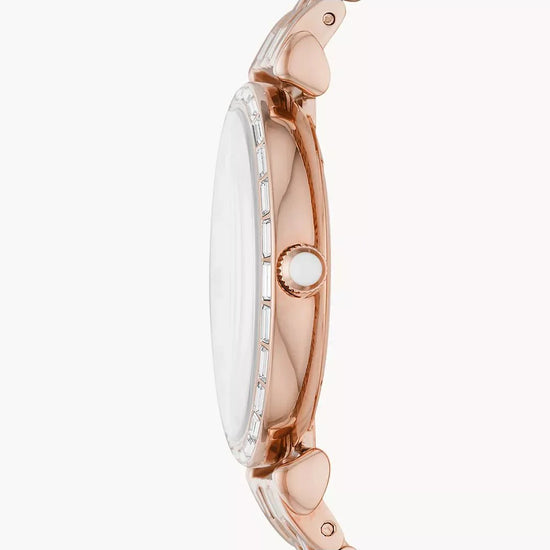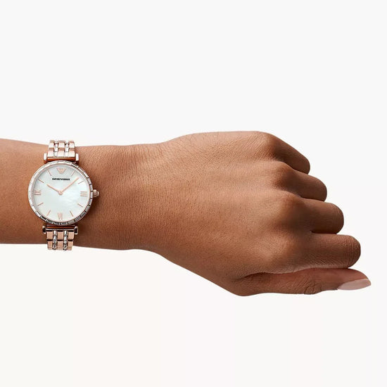 the emporio armani ar11294 rose gold-tone stainless steel chronograph watch is the epitome of luxury and sophistication. designed for the modern man, this watch features a stunning rose gold-tone stainless steel case and bracelet, making it a statement piece for any occasion. the silver sunray dial is accented with rose gold-tone hands and markers, adding a touch of elegance. the chronograph functionality ensures precision, while the date display offers practicality. with water resistance and durable construction, this watch is perfect for both daily wear and formal events. enhance your collection with the timeless charm of the emporio armani ar11294.