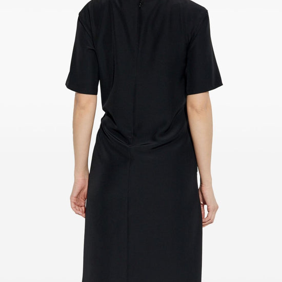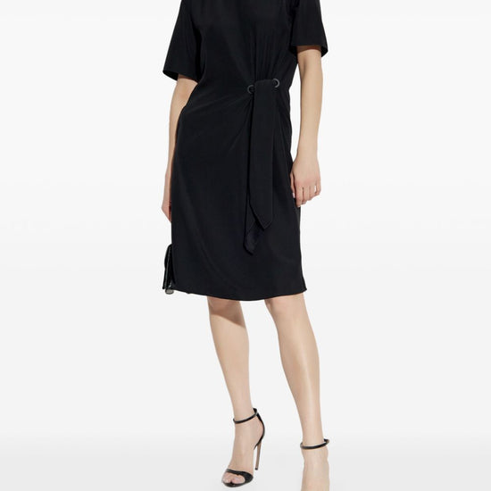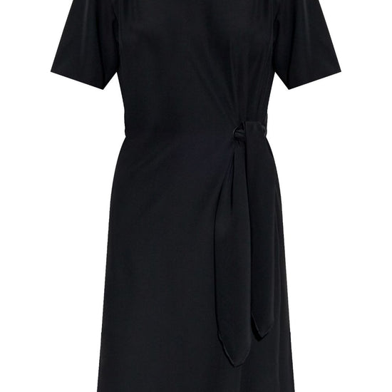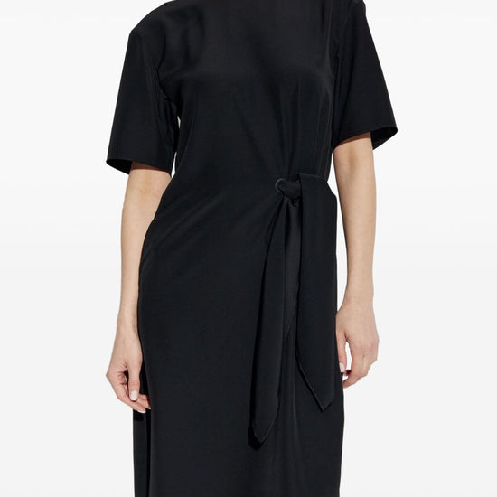 Black concealed rear zip fastening tied waist round neck short sleeves midi dress size and fit - this piece fits true to size. we recommend you get your regular size. model is 1,75m / 5ft 8in wearing size 40 (it)