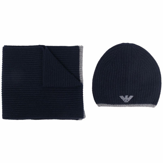 Emporio Armani ribbed knit embroidered logo scarf & beanie set