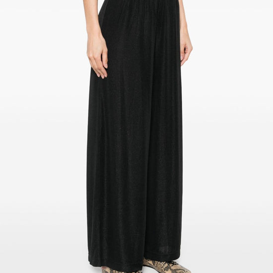 Black elasticated waistband lamé effect  wide-leg trousers size and fit - this piece fits true to size. we recommend you get your regular size. model is 1,75m / 5ft 8in wearing size s