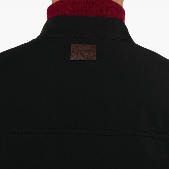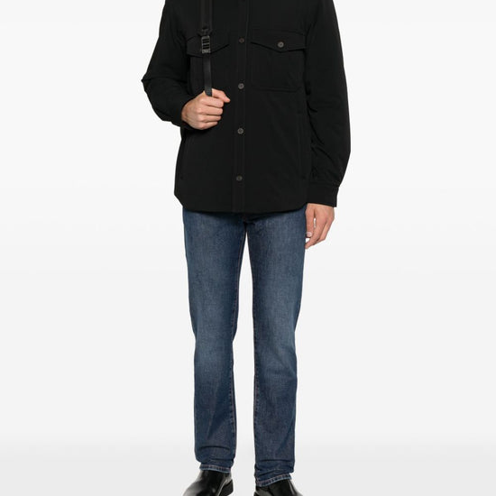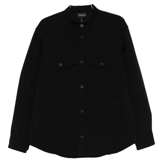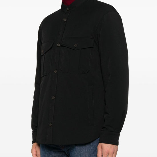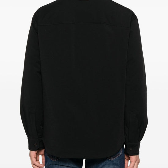 Black button fastening two chest pockets long sleeves straight hem nylon shirt