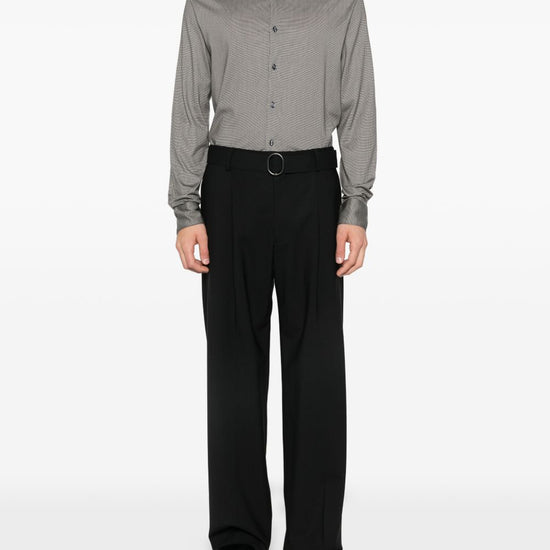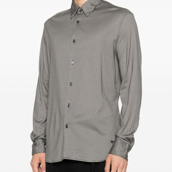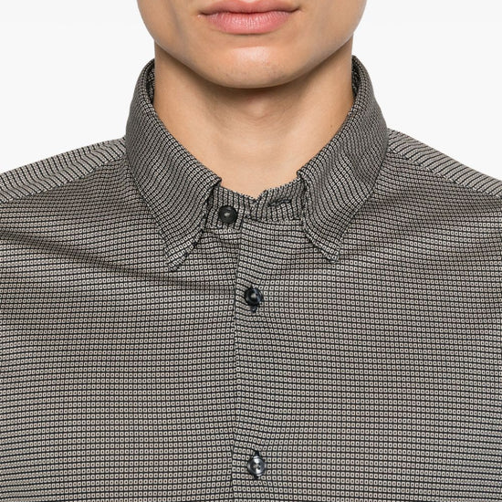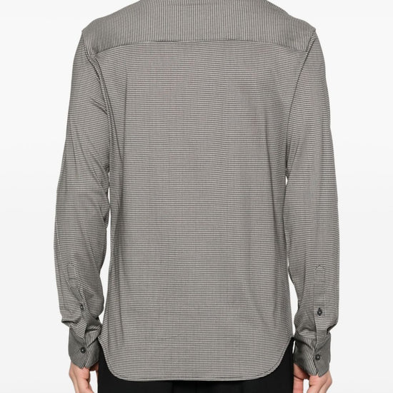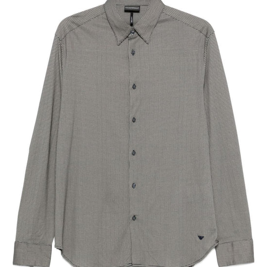 Black geometric-pattern button fastening long sleeves buttoned cuffs curved hem cotton blend shirt