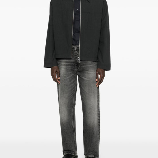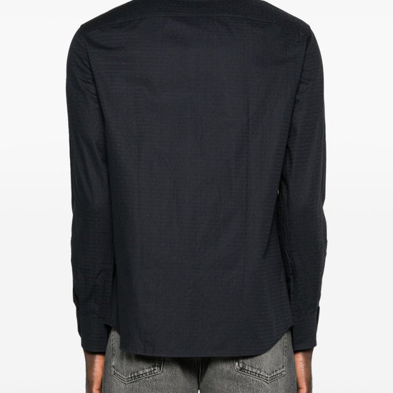 Blue cotton textured finish button fastening long sleeves buttoned cuffs classic collar logo cotton shirt