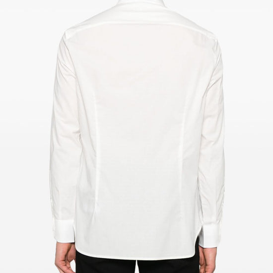 White front button fastening buttoned cuffs long sleeves allover logo cotton shirt size and fit - this piece fits true to size. we recommend you get your regular size. model is 1,84m / 6ft 1in wearing size m