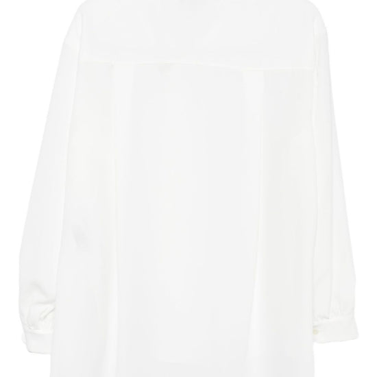 White long sleeves neck tie buttoned cuffs asymmetric hem bow-tie blouse