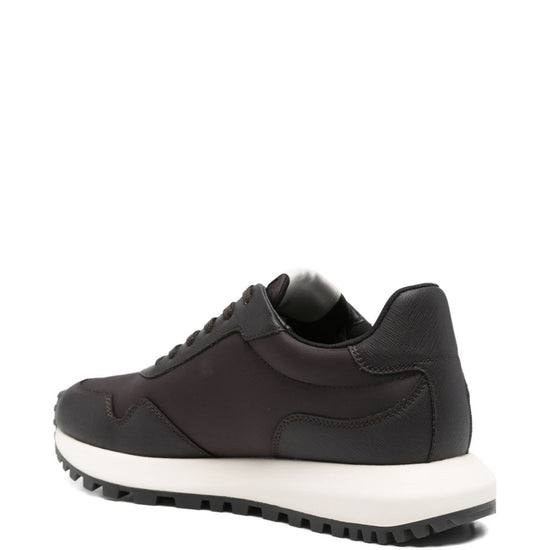 Brown logo detail lace-up fastening rubber sole logo nylon sneakers