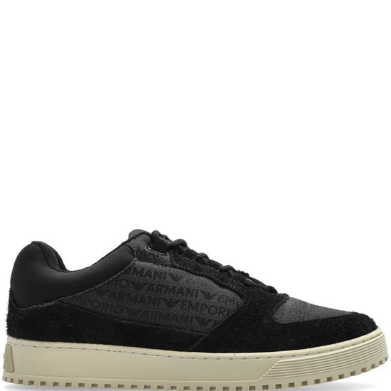 Emporio Armani Sneakers in jacquard fabric with logo lettering and suede
