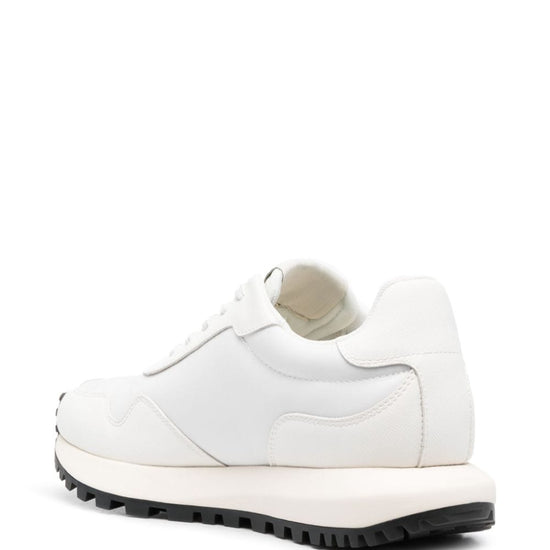 White recycled polyester/calf leather panelled design silver-tone logo plaque logo patch at the tongue round toe front lace-up fastening branded insole eva midsole ridged rubber sole logo sneakers size and fit - heel 1,4 in / 3,5 cm; platform 0,4 in / 1 cm
