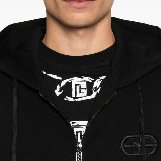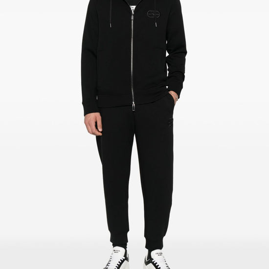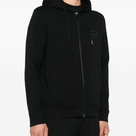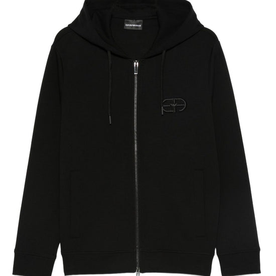 Emporio Armani Double jersey zip-up hoodie with embossed EA logo embroidery