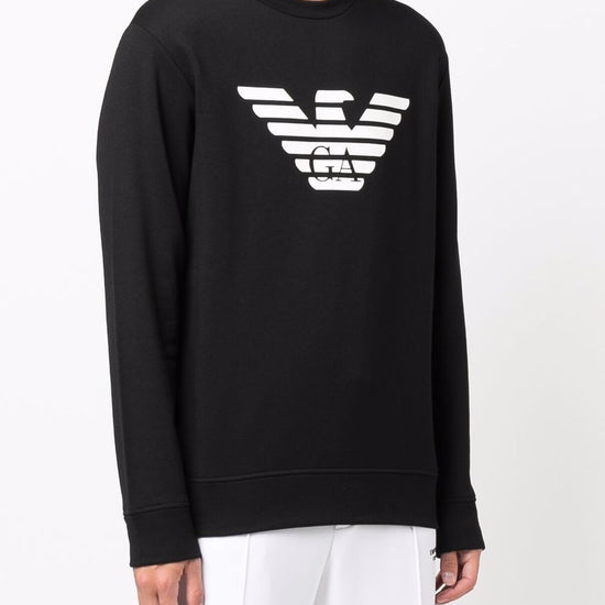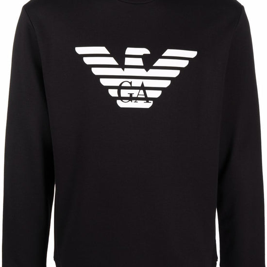 Black cotton-modal blend logo print at the chest crew neck long sleeves straight hem cotton blend crewneck sweatshirt