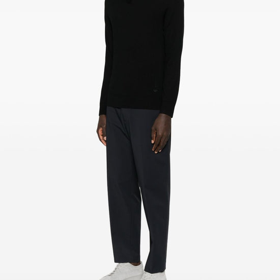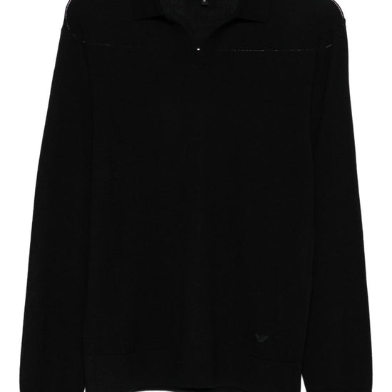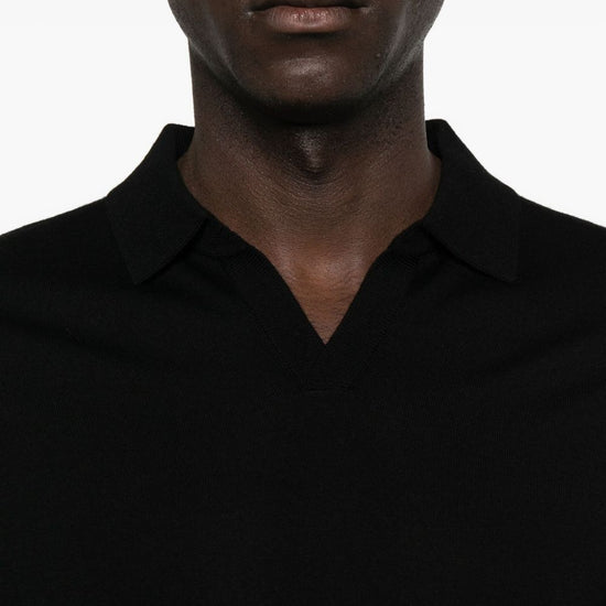 Black polo neck long sleeves ribbed cuffs wool polo shirt