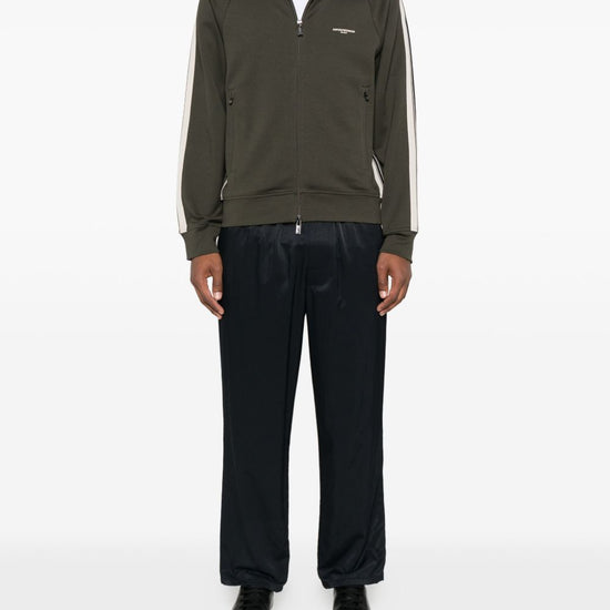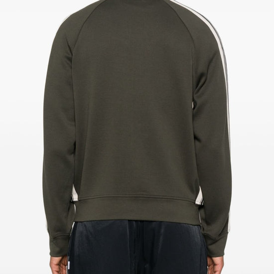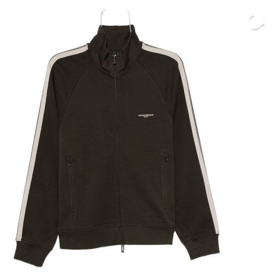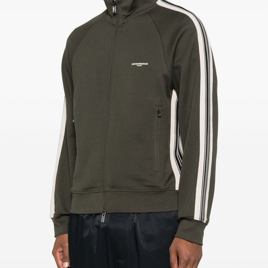 Green zip fastening ribbed cuffs high neck long sleeves side pockets stripe detail logo cotton zipped sweatshirt size and fit - .