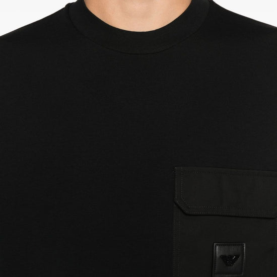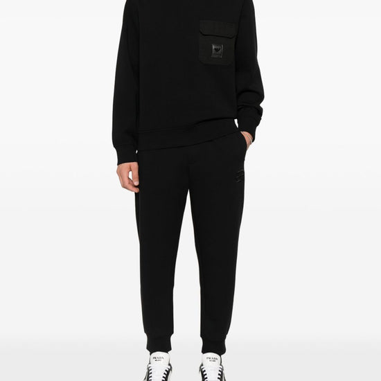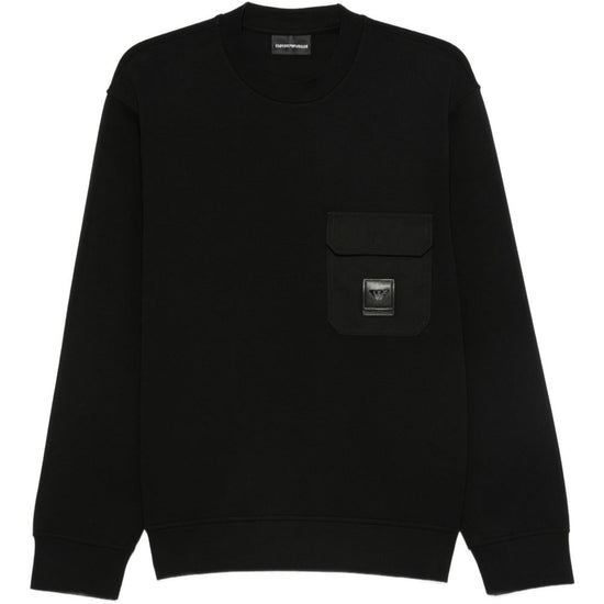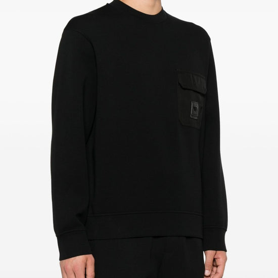 Black crew neck patch pocket logo plaque long sleeves ribbed cuffs cotton crewneck sweatshirt