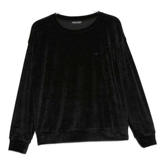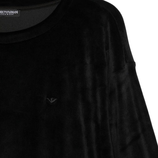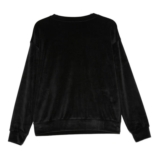 Black velvet effect logo detail round neck long sleeves elasticated hem
