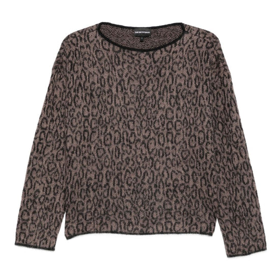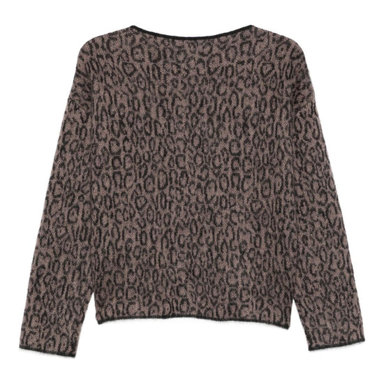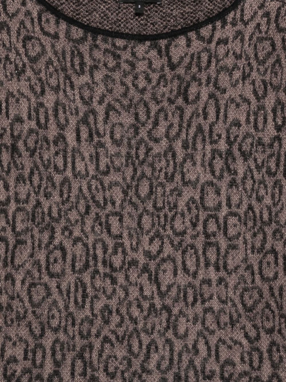 Brown leopard print long sleeves round neck ribbed hem wool blend crewneck sweater